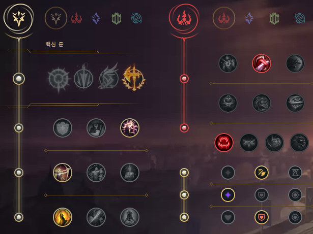 롤 케넨 룬은 아래 사진처럼 정밀(정복자) + 지배 들어주시면 되겠습니다.