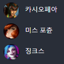 애쉬 카시오페아 등 CC기 가진 원딜이 나온다면 정화 들어주시면 됩니다.