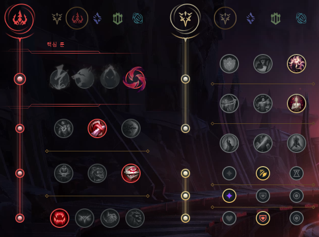룬은 취향에 따라 들어주시면 되겠습니다. 칼날비는 빠른 5 스택 효과 적용 / 집중공격은 지속 딜이 좋습니다.