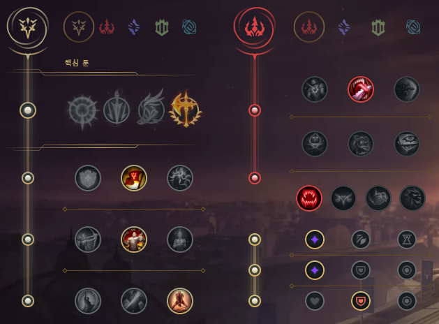 칼바람 모데카이져 룬 및 협곡 모데카이져 룬은 같으며 정복자 들어주시면 되겠습니다.
