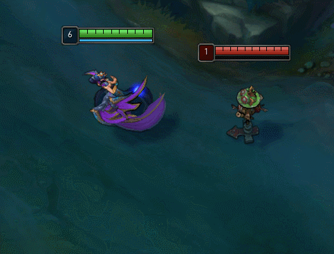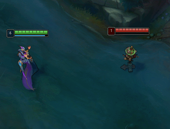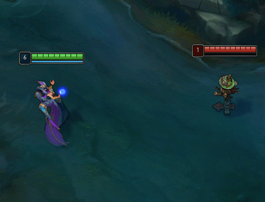 두 번째는 E스킬을 쓰고 다가가 궁극기를 사용한 후 속박이 된 적에게 Q스킬 W스킬을 사용하는 콤보가 있습니다. 두번째 방법을 사용하신다면 확정적으로 Q, W스킬을 맞추실 수 있습니다.